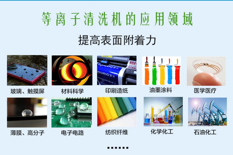 等離子清洗的應(yīng)用已經(jīng)非常非常廣泛,汽車制造、手機(jī)制造、玻璃光學(xué)、材料科學(xué)、電子電路、印刷造紙 朔料薄膜 包裝技術(shù) 醫(yī)療醫(yī)用 紡織工業(yè) 新能源技術(shù) 航天軍工 手表首飾等等